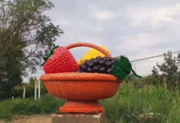 新款玻璃鋼彩繪大型水果籃采摘農場戶外小品擺件