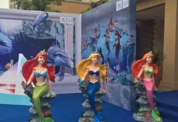 精美的兒童樂園海洋館,玻璃鋼卡通小美人魚雕塑