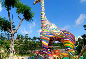 海邊大型彩繪玻璃鋼長頸鹿雕塑