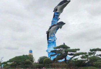 寫字樓里的海豚,精美的銅雕展示動物精神
