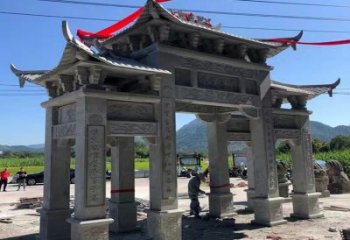 傳統中式園林村莊入口石雕牌坊