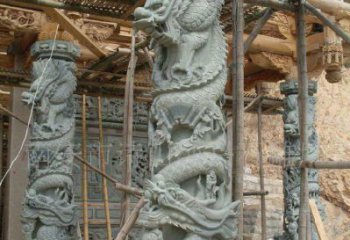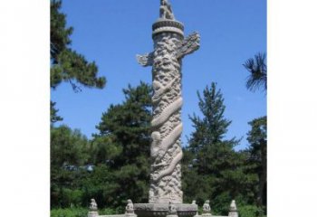 漢白玉浮雕龍盤石柱子在寺院門口擺放的藝術(shù)之美