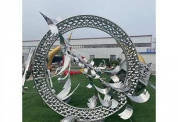 不銹鋼海豚景觀雕塑,提升酒店會所的抽象圓環氛圍