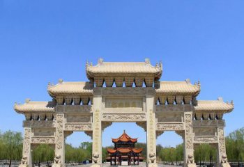石雕牌坊雕塑構成建的十分科學,不僅可以遠泄雨水,也可保護其他石質構建以及改善室內采光。此外,農村石雕牌坊雕塑較為輕便,視覺上也更顯得靈巧輕盈。雖然石牌坊的加工和取材較為方便,既堅固耐潮,且農村園林景觀牌坊雕塑低廉,是我國史上廣泛使用的建材。大型花崗巖牌坊樣式圖片明清時期石雕牌坊建筑的鼎盛期,石牌坊常被用于建造門坊。