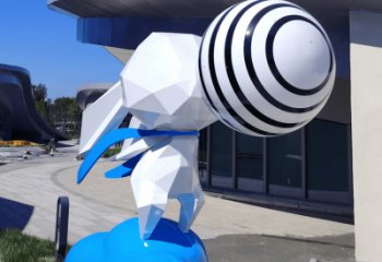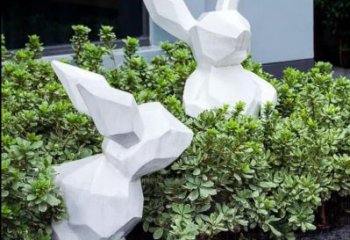 這是一座不銹鋼戶外景觀雕塑,以幾何切面塑白兔形象,綴金色裝飾,簡約現代,為場地添靈動活力 。
